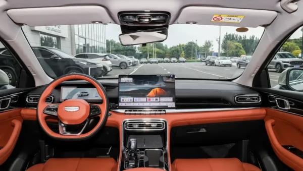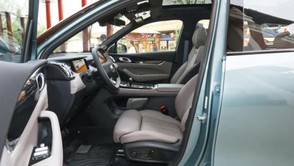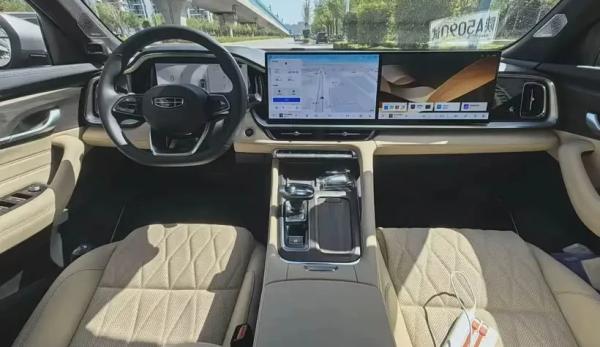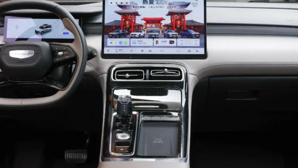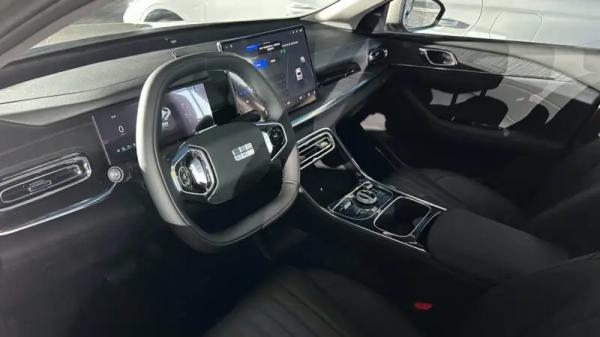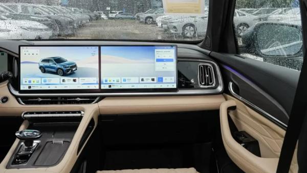 В салоне типичная архитектура передней панели современных китайских автомобилей: по центру установлен крупный квадратный дисплей мультимедийной системы диагональю 15,4 дюйма с разрешением 2,5K — он пришёл на смену прежнему вертикальному экрану. На обновлённом центральном тоннеле сохранился физический селектор трансмиссии, а перед водителем появился новый руль и компактная цифровая приборная панель с виртуальной индикацией.