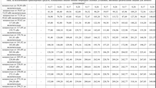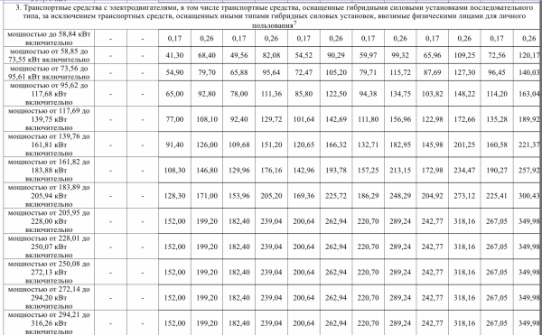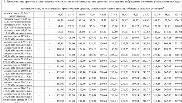 Таблица с новыми коэффициентами для электромобилей и последовательных гибридов